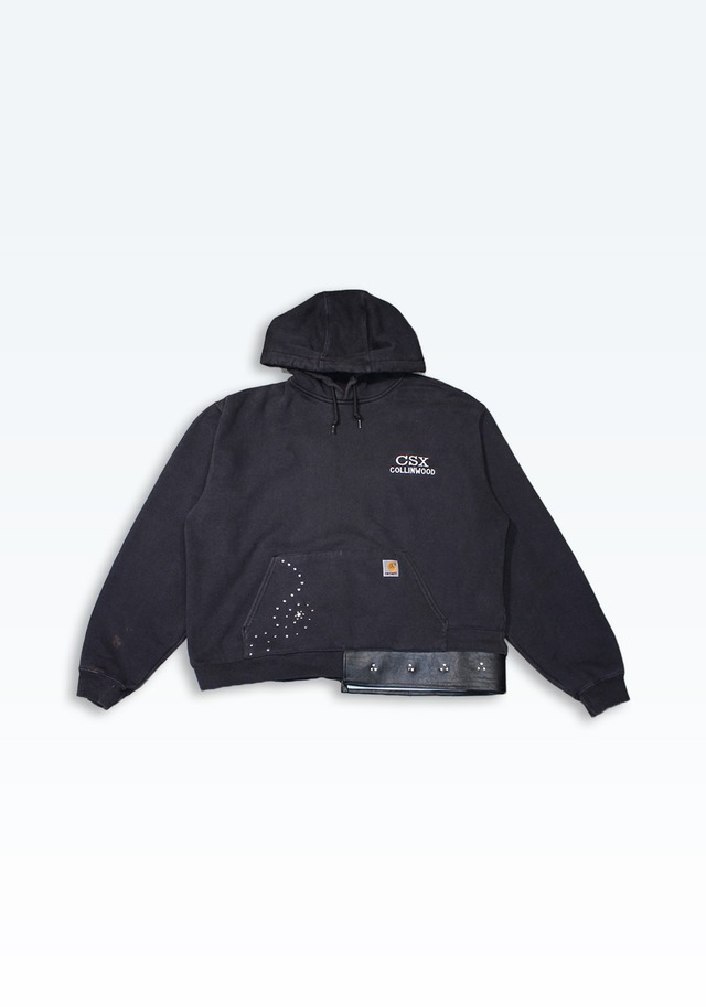 Thank u for coming our page‼︎! PN:2601-004 Carharttのフーディーをベースに、裾へレザーを配し、カシメで再構築した一着。 ワークウェアの無骨さに、工業的なディテールと静かな品格を加えている。 一点一点異なる表情を持つリメイクアイテムのため、すべて一点物。 ※ハンドメイドという性質上、記載以外の把握しきれない 軽微なダメージ汚れがある可能性も予めご了承下さい SIZE:XL相当 ・肩幅: 68cm ・袖丈: 66cm ・着丈: 64cm ・身幅: 62cm ■キーワード ・オーバーサイズ ・ビッグサイズ ・古着 ・90年代 ・80年代 ・ 90s ・ 80s ・ヴィンテージ ・ビンテージ ・vintage ・ USA ・アメカジ