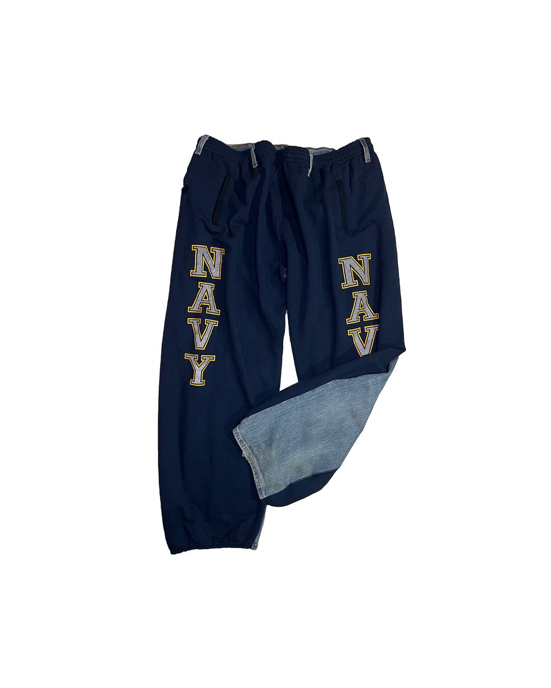 スウェットのラフさとデニムのヴィンテージ感が共存する、1点モノの存在感。