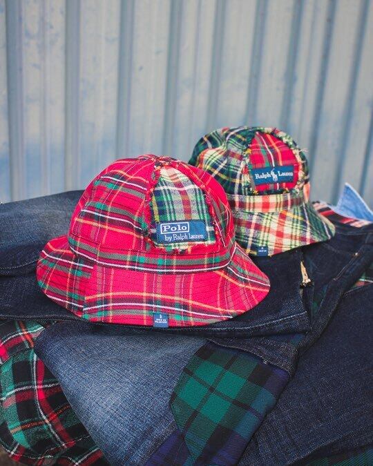 ラルフローレンのチェックシャツを解体し、TRIPLE DEMICの視点で再構築したリメイク・メトロハット。