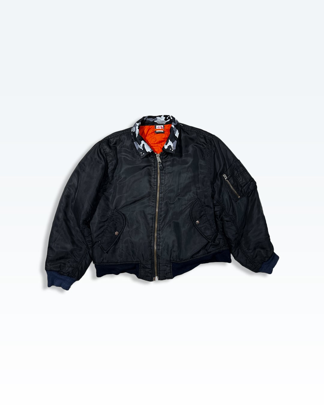 MA-1本来のミリタリー要素を残しつつ、TRIPLE DEMICならではの再解釈を加えています。