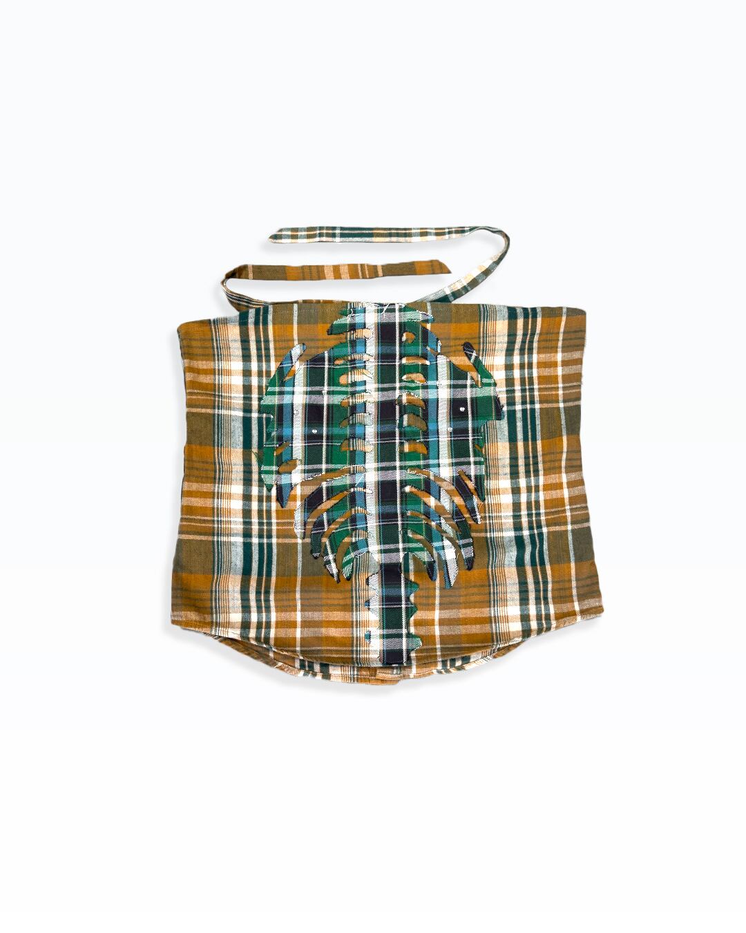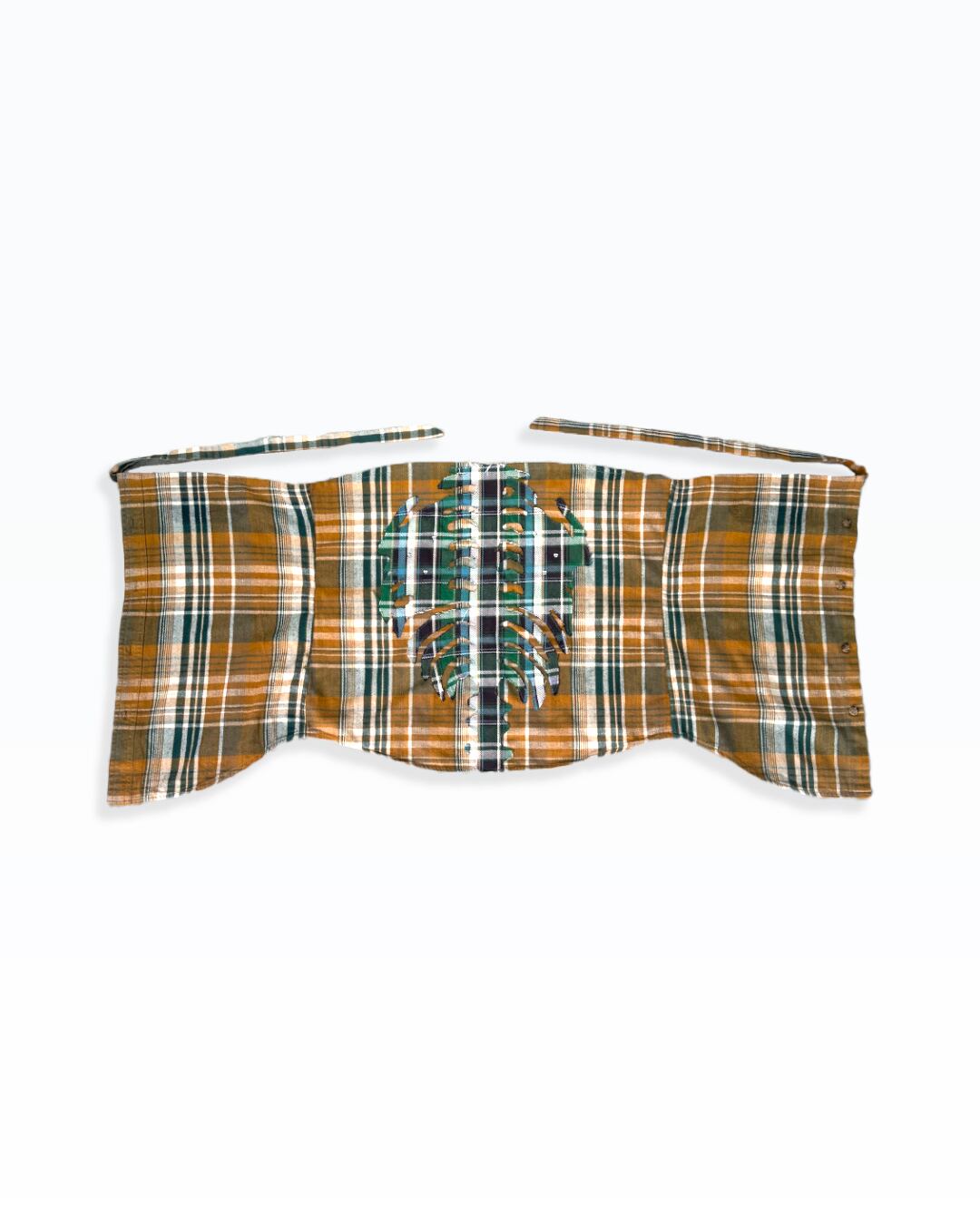 チェックシャツを解体し、腰に巻くために再構築したスカーフ。