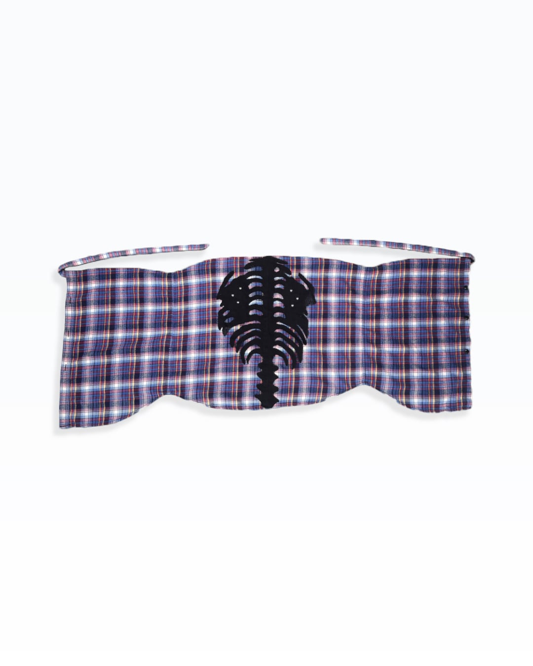 チェックシャツを解体し、腰に巻くために再構築したスカーフ。